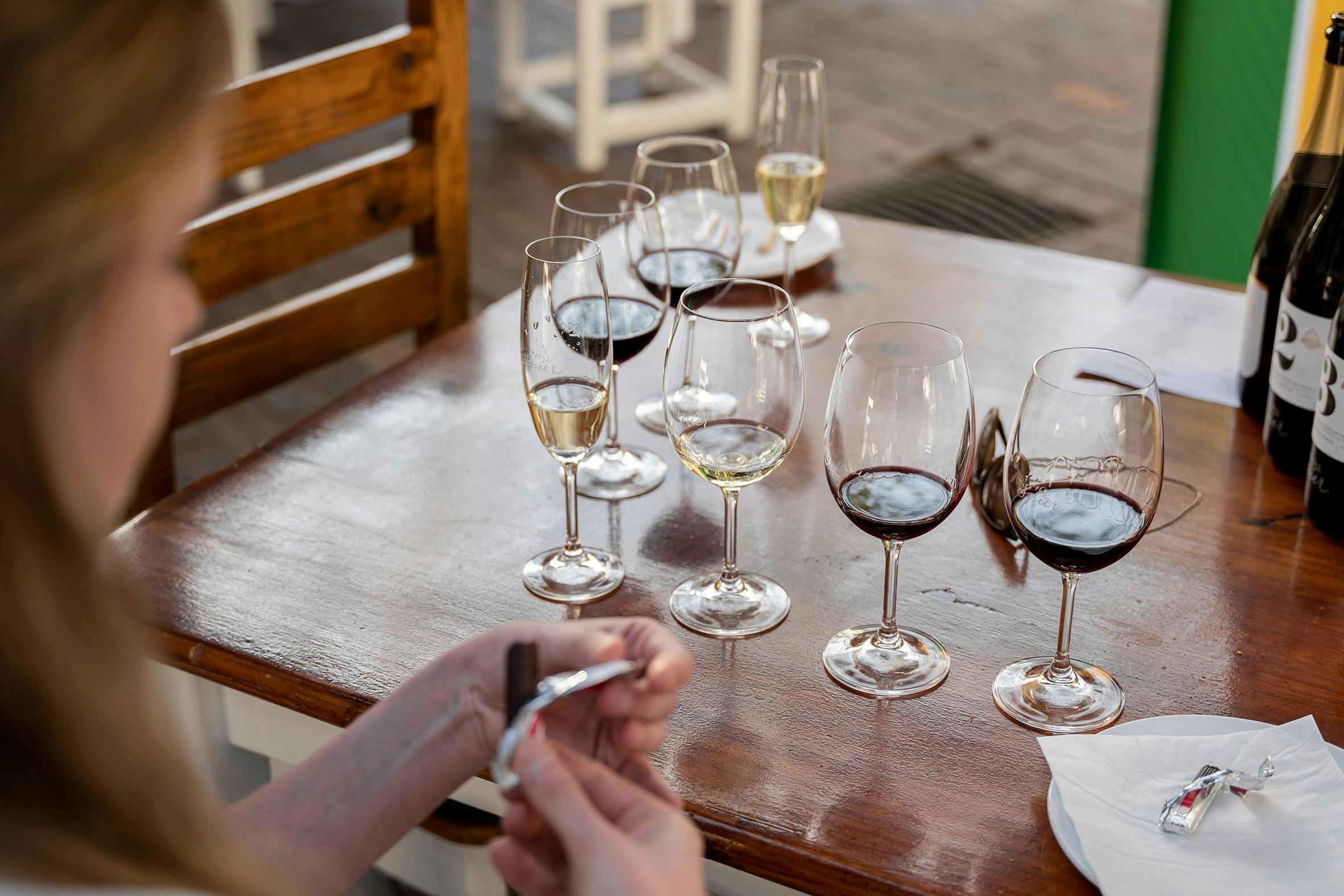 Taste 3 wines, paired with three artisan chocolates. Includes a bubbly taster. This pairing unlocks and heightens flavour nuances in both the chocolates and the wine.